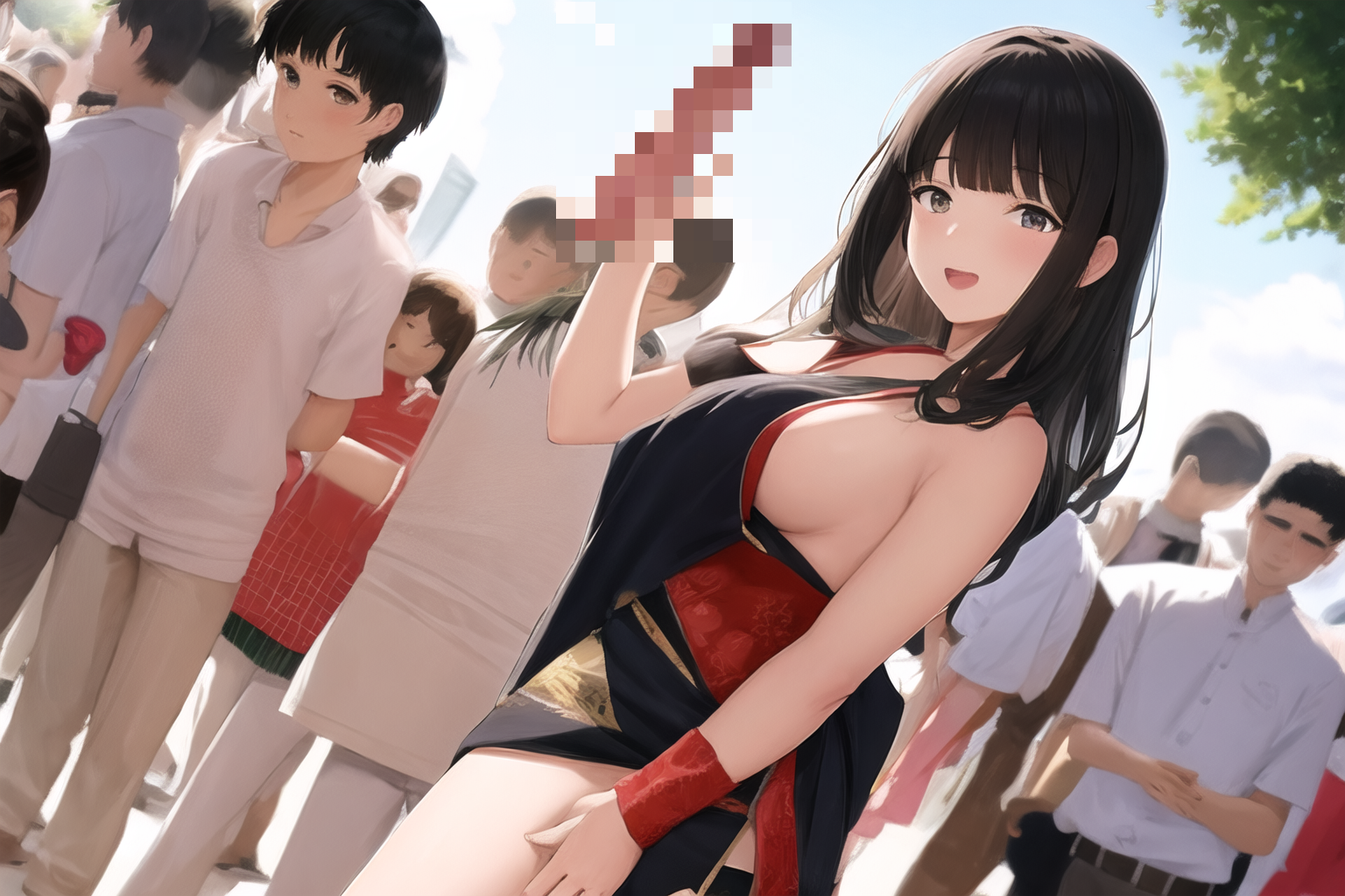 1girl, nude, outdoor, crowded people